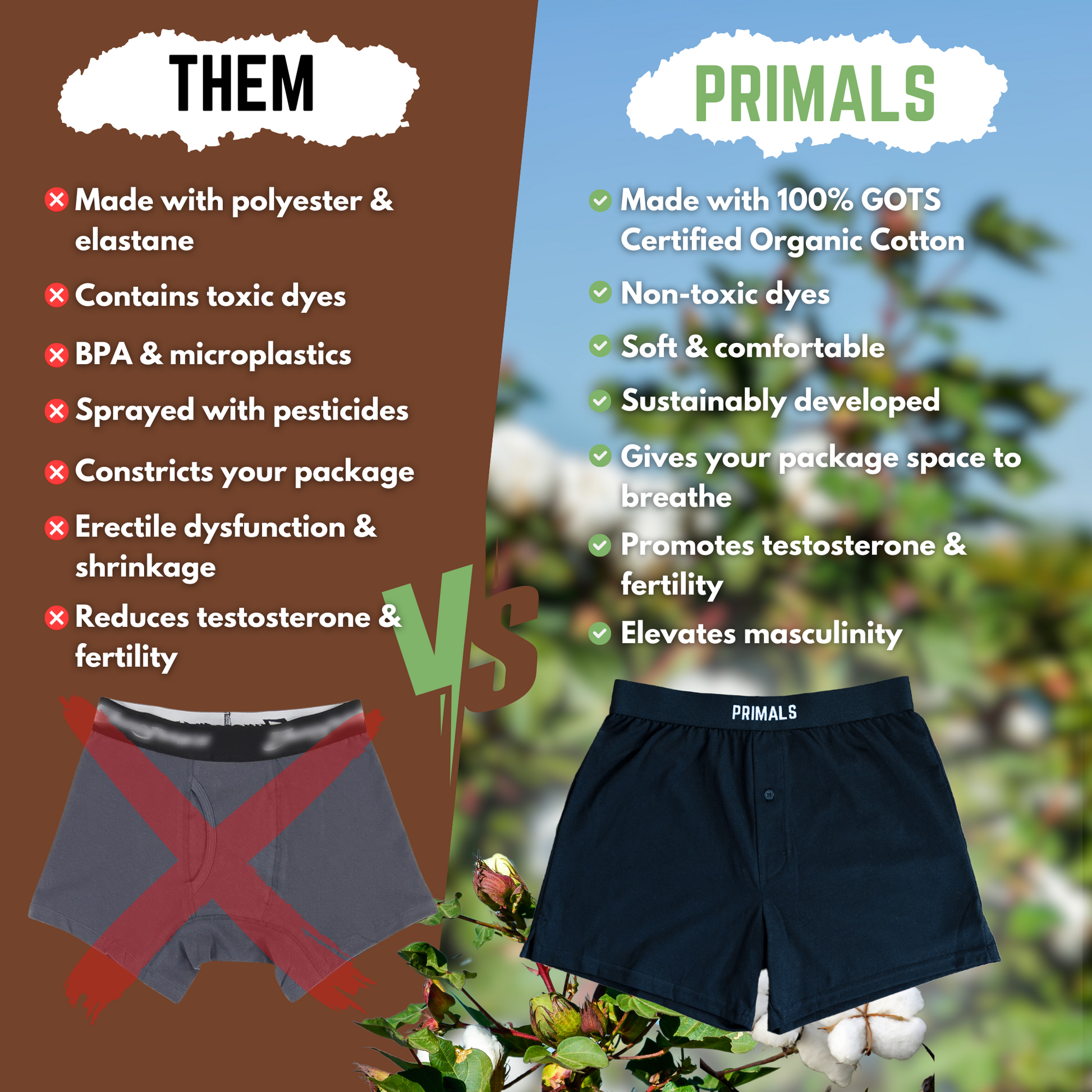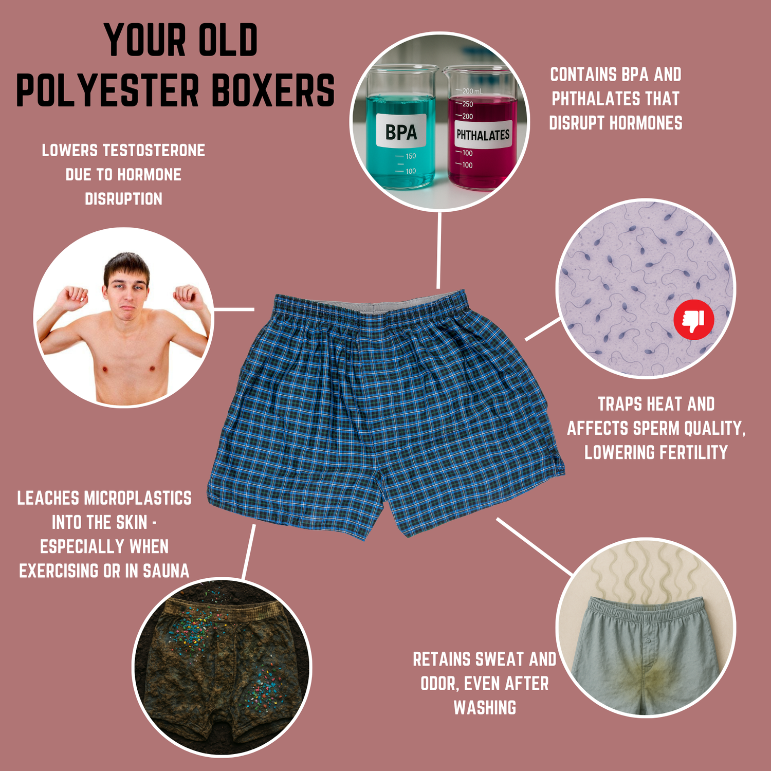 I found out about how bad polyester can be for your fertility. 100% organic cotton and fit perfectly, and are super soft and comfortable.